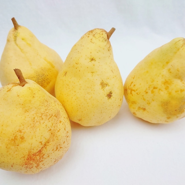 たかはし果樹園が長い年月をかけて 研究育成を続けてきた高級西洋梨です。 冬の剪定作業から年末の果実の選別、販売まで ル・レクチェ作りは一年中忙しく 休むことができません。 その中で更なるこだわりを継続していくことは 当然容易ではありませんが お召し上がりいただいた方に喜んでいただける 感動してもらうことのできる果物を目指し 日々、研究育成を積み重ねています。 その結果、新潟県で開催される 「ル レクチエ果実品評会」では 2009年と2017年の二度の最優秀賞を 含む多くの賞に選ばれています。 たかはし果樹園スタッフ全員による 想いの結晶、ぜひお試しください。 ル・レクチェはとても繊細な果物で どれだけ丁寧な栽培を行っても 傷や汚れ、変形などが出てしまいます。 そんな果実はご家庭用品として 主にたかはし果樹園の直売所で 販売しておりますが、通常 外観に難のあるル・レクチェの ネットでの販売は行っておりません。 直売所のみの販売でも 常に品薄になってしまうこともありますが なによりも実際のお品物の程度に ご納得いただいてから お買い上げいただきたいからです。 ですが今回、大きな問題が無いと 判断したお品物をごく僅かではありますが オフィシャルオンラインショップで 販売いたします。 数量はごく僅か 直売所でも販売いたしておりますので 無くなり次第終了となります。 こちらは多少の傷、あざ、変形などが あるお品物となっております。 ご了解の上、お申込みいただきますよう よろしくお願いいたします。 内容量:約4kg (7~14個入り) 発送日:果物が美味しくなったタイミングで 順次発送いたしますので、 日にちのご指定はできません。 ご了承ください。 保存方法:直射日光を避けて 暖房の無い場所で保存し お早目にお召し上がりください。 おことわり:ル・レクチェは生ものです。 常時検査を行っていますが、 まれに傷みがある果実が 入っている場合がありますので ご了承ください。
